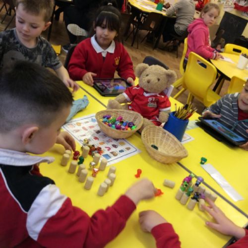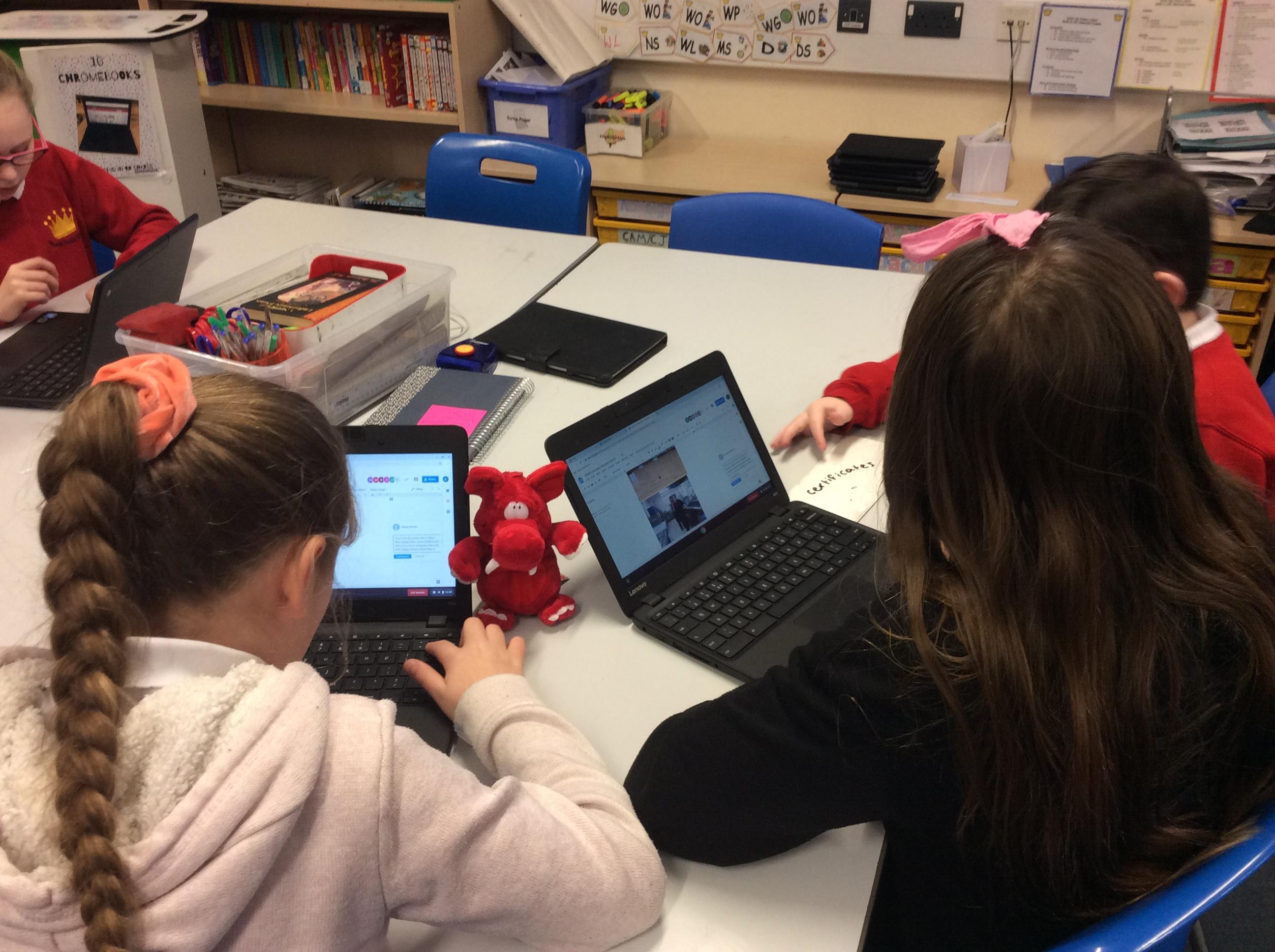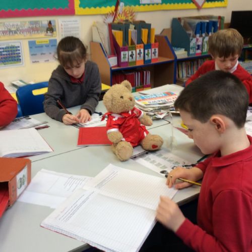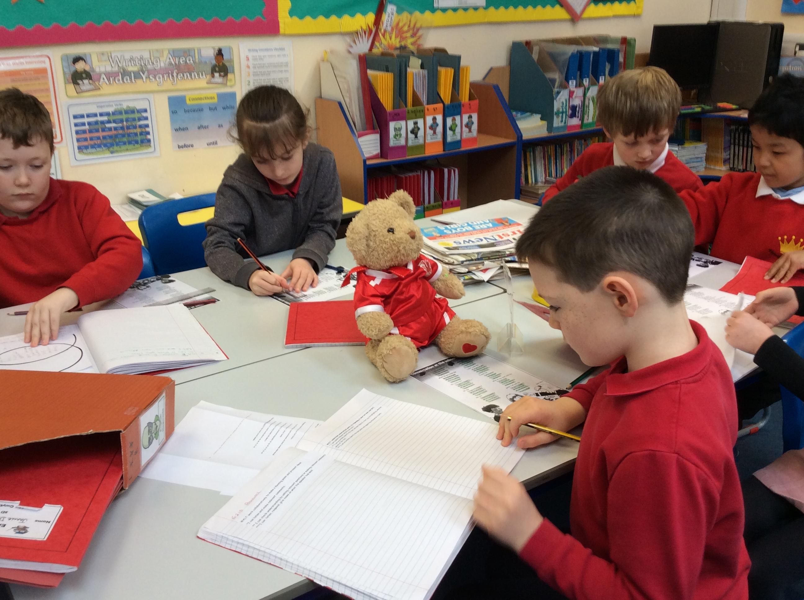Throughout Foreign Office's existence, we have sent many messages, letters and 'Culture Boxes' to Uganda and received lovely things in return. We took PONT's bears, Dewi and Dylan, around the school on a tour and the photos were sent to Bulatse Primary School. They were amazed to see how many resources we have in the school! Dylan now lives in Uganda and goes around the different schools.